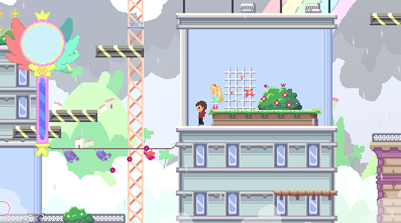 These are screenshots of games I’ve made, featuring completely original pixel art, meant to show off how my art can create beautiful environments and levels.